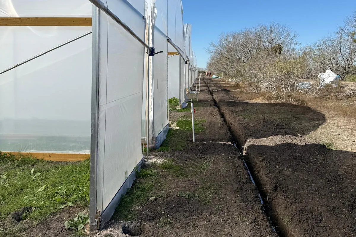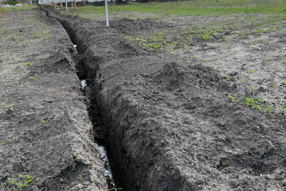 A key component of the development includes trenching and installation of irrigation lines, ensuring precise water distribution across planting zones. These systems are engineered to optimize resource usage while supporting healthy crop development.