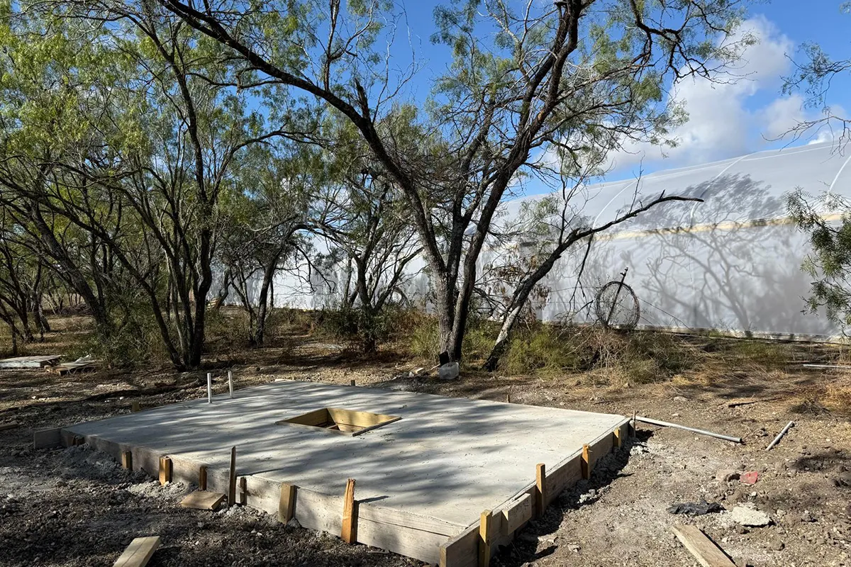 - Concrete slab foundations for operational support structures